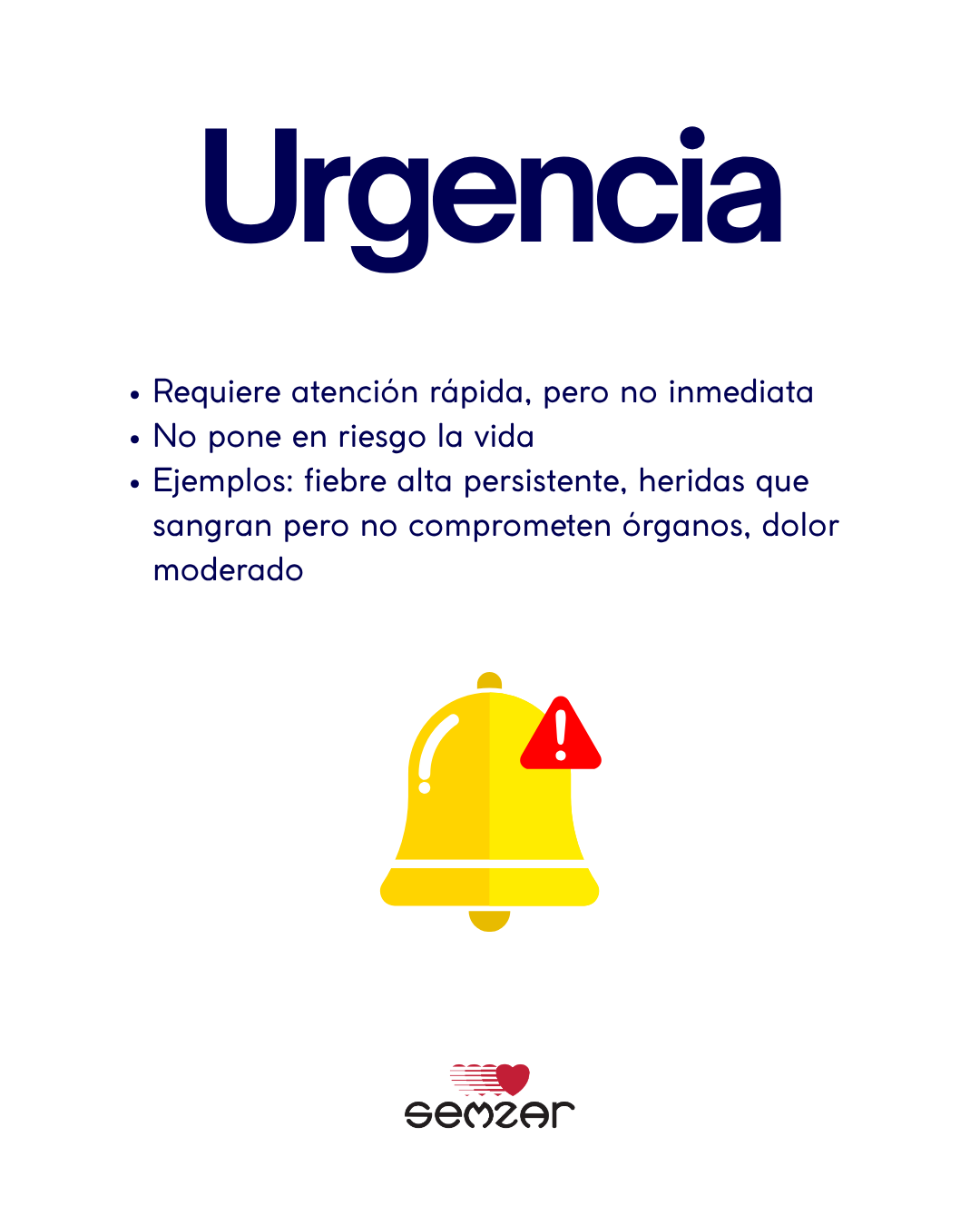 ⏱️ Urgencia: requiere atención médica rápida, pero no pone en riesgo la vida. Fiebre alta, herida sangrante.📞 Ante la duda, llamanos al 430911