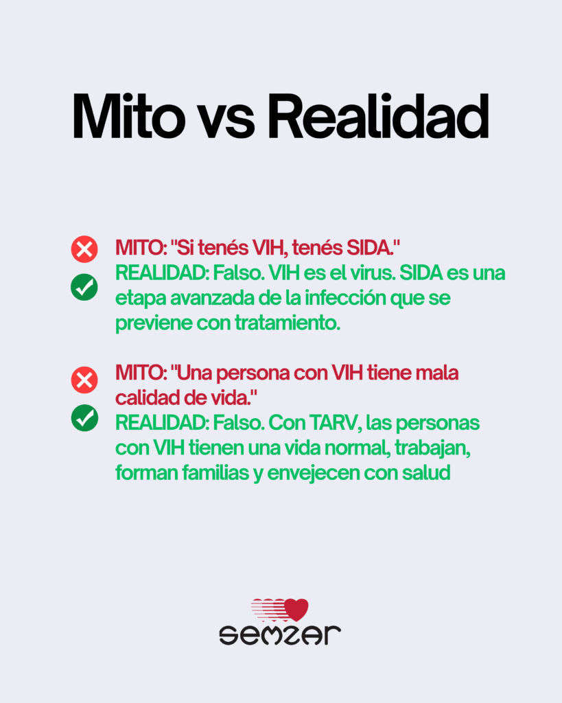 ¿Sabías que #VIH no es lo mismo que #SIDA? Esta distinción es crucial para entender la realidad del virus y combatir los mitos que lo rodean. Con el tratamiento adecuado (TARV), las personas con VIH pueden vivir una vida plena y sana, e incluso lograr que el virus sea indetectable y, por lo tanto, intransmisible por vía sexual (I=I). La desinformación alimenta el estigma. ¡Informate, hacete el test y compartí conocimiento!